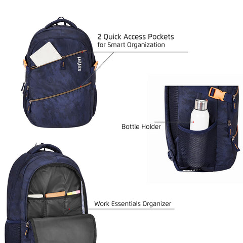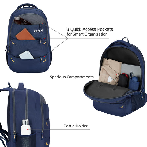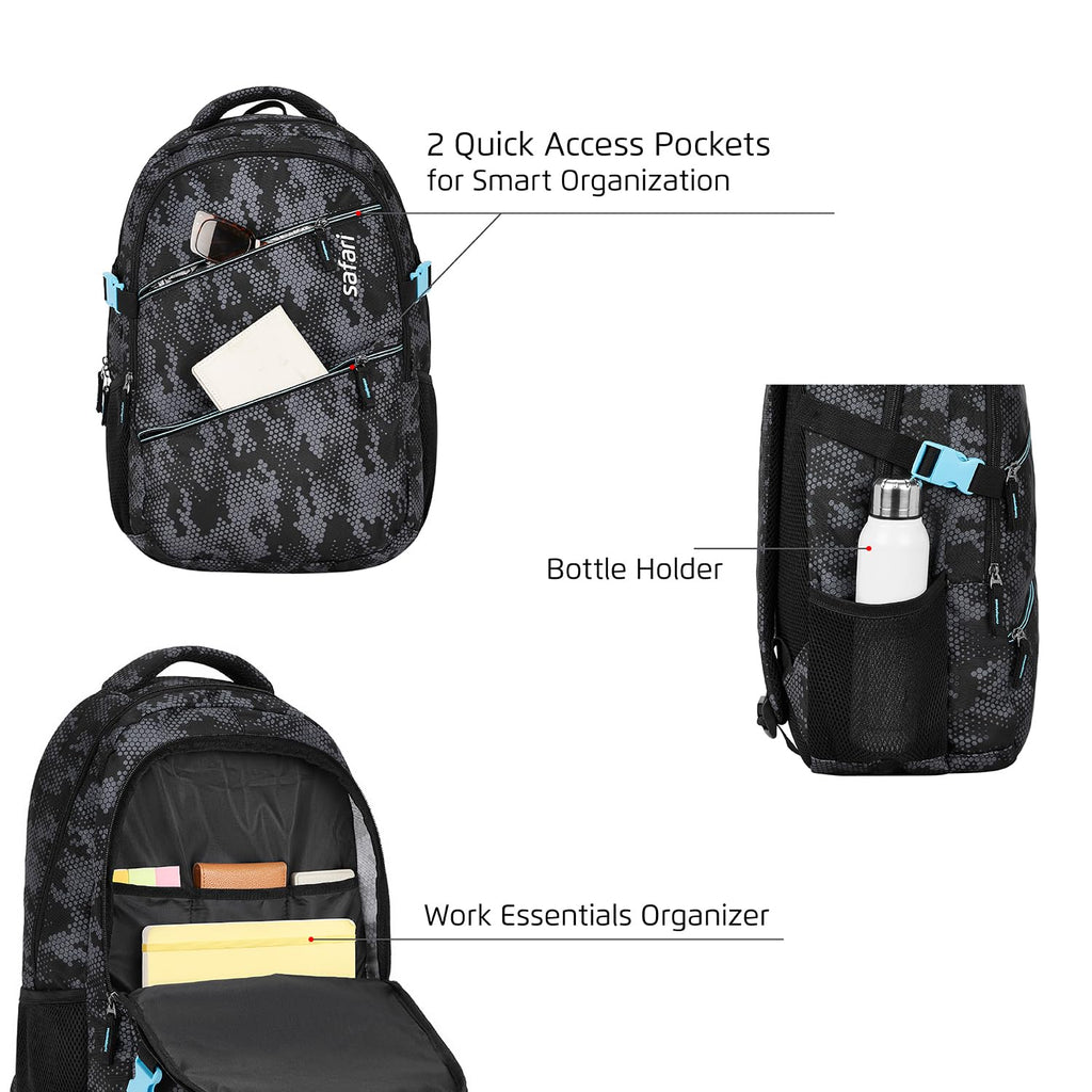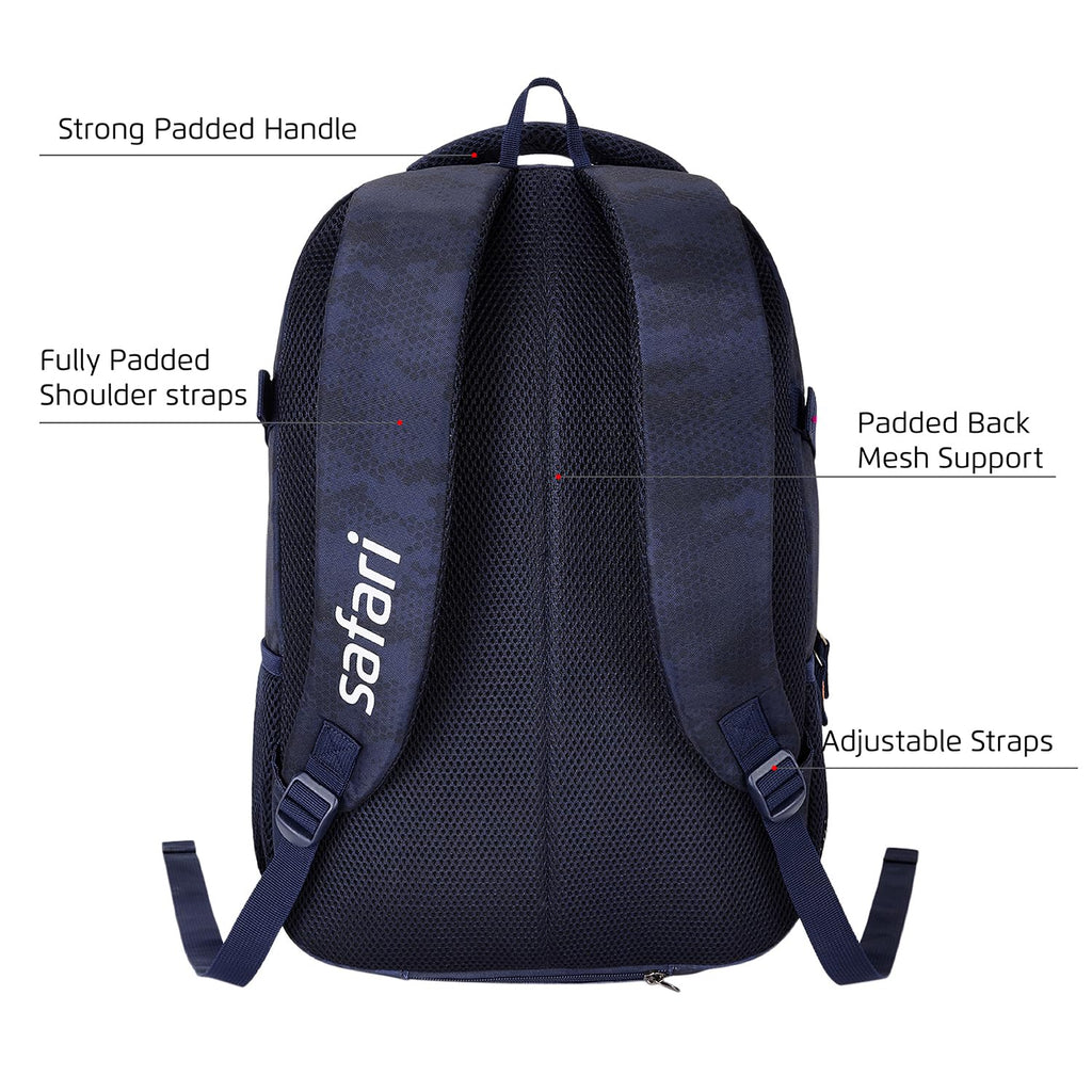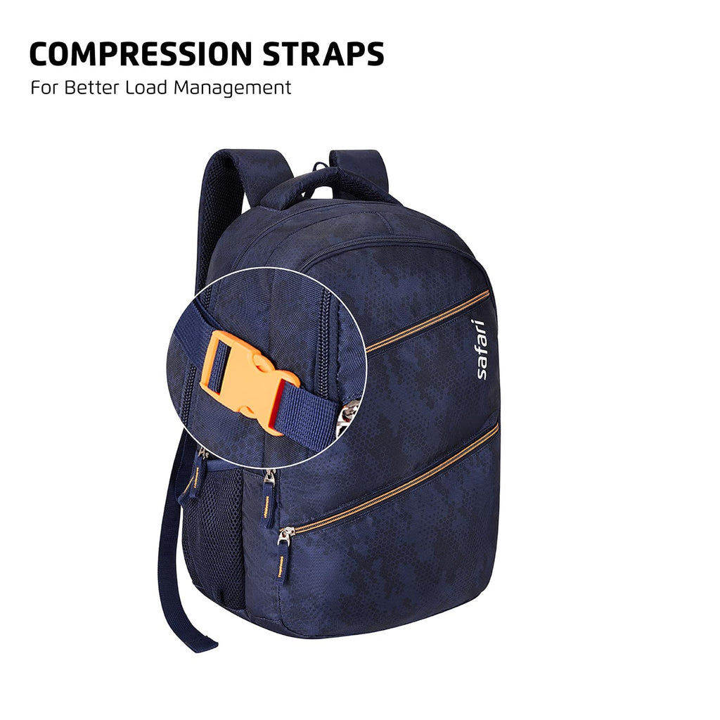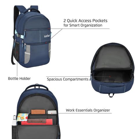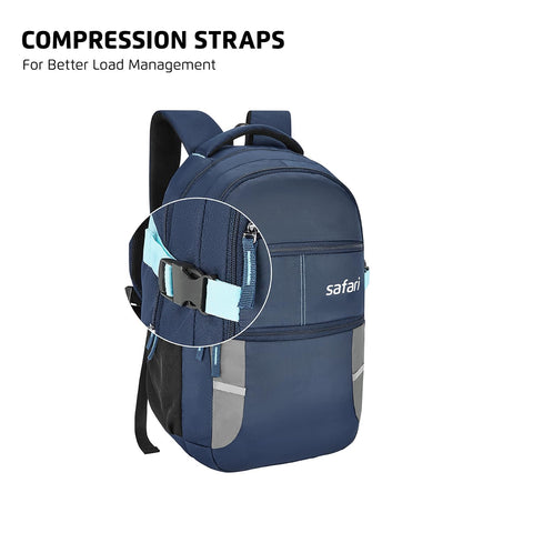 Safari Omega is a multi-purpose 2 compartment spacious laptop backpack suitable for office, travel, school. It comes with 2 front pockets and an organizer. The compression straps make your travelling comfortable by restricting the movement of items inside the backpack. It also comes with a rain cover ensuring protection throughout the year. Reflective strips will provide assistance during night travel. All in all it's a fully packed product that caters to all your daily travel needs.