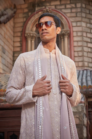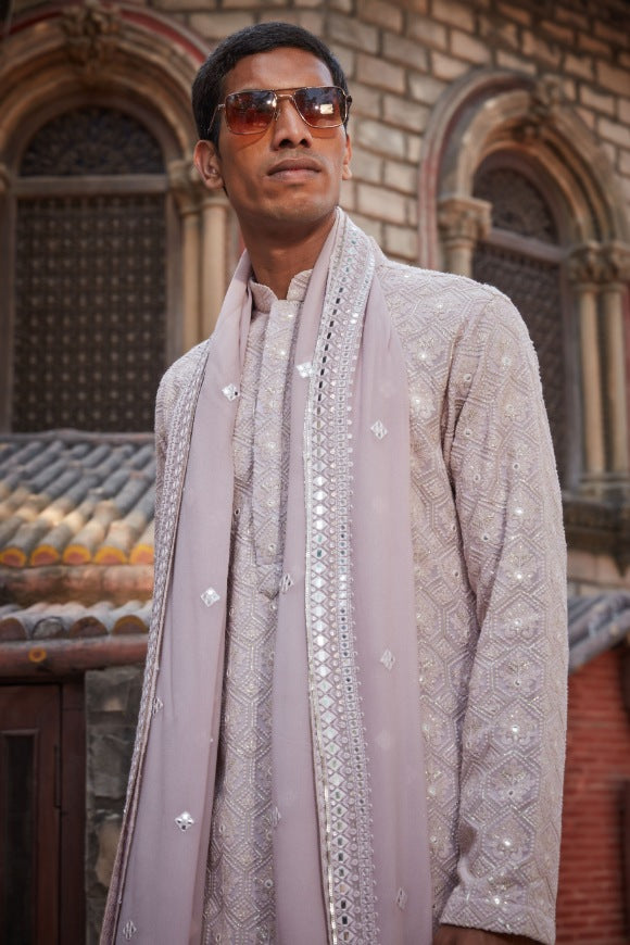For the modern man who embraces tradition as his style signature, our Druce- Lilac kurta set