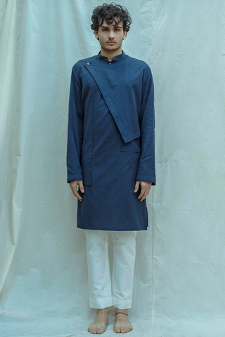 Cotton X Linen Royal Blue Overlap Kurta